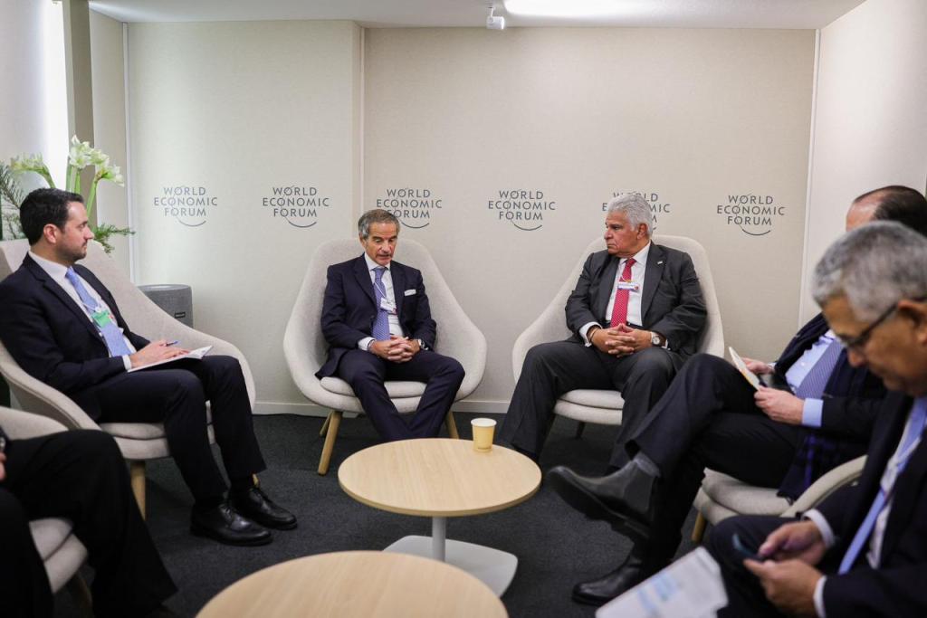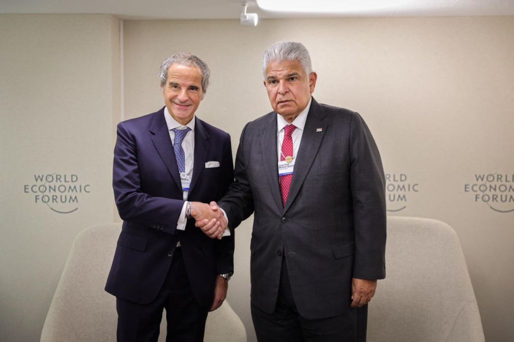 En el marco del Foro Económico Mundial, el presidente Mulino sostuvo una reunión con el director general del Organismo Internacional de Energía Atómica (OIEA), Rafael Mariano Grossi, para revisar los avances de los proyectos de cooperación entre el organismo y Panamá.