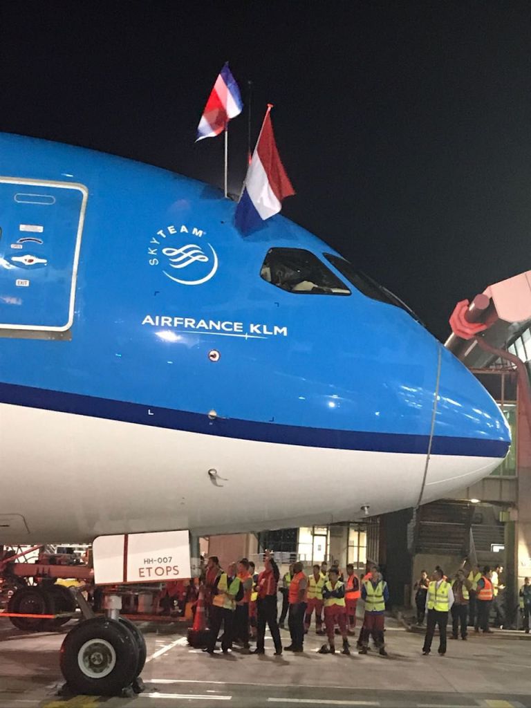 Según datos preliminares, el vuelo procedente de los Países Bajos arribará a Costa Rica a las 5:10 p. m., mientras que el vuelo de regreso saldrá a las 8:35 p. m. hacia Ámsterdam.