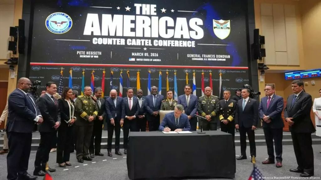 Previo a la cumbre, el secretario de Defensa de Estados Unidos, Pete Hegseth, visitó el Comando Sur, responsable de las operaciones militares estadounidenses en América Latina, donde participó en una reunión denominada Conferencia Anticartel de las Américas.